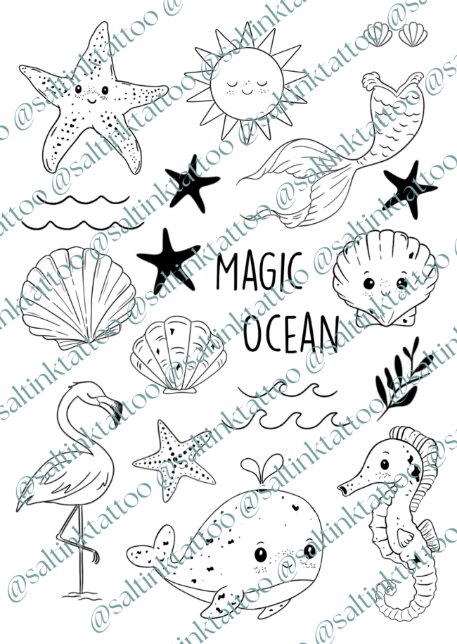 Un monde sous-marin enchanté t’attend : coquillages souriants, baleines câlines et étoiles de mer magiques. Splash !